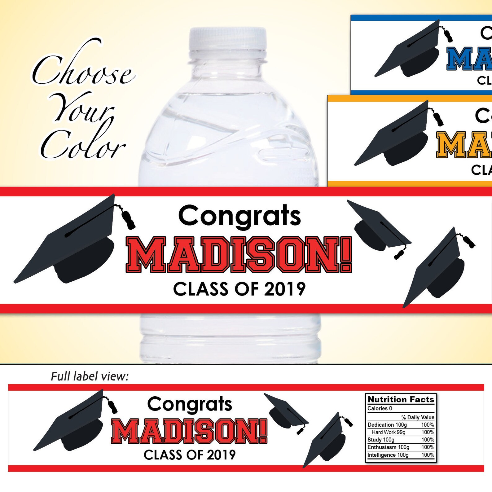 Amazon.com: 100 Pieces Graduation Water Bottle Labels Class of 2022 ... Waterproof Performance: our graduation water bottle labels are composed of pearlescent film, with a smooth and waterproof surface, not easy to break or fade; Please ensure that the water bottle surface is dry and clean before pasting to ensure the stickiness of these labels Year Graduation Water Bottle Labels - Announce It! Minimum order 10 labels; Water bottle labels are self-adhesive (peel and stick) Measure 2 inches x 8.5 inches; Fit most 16.9 fluid ounces and 8 fluid ounce bottles; Printed on gloss stock in four color process; Assembly Required; Graduation bottle label orders ship within 2-3 business days. This does not include shipping time. Graduation Water Bottle Labels, Personalized Labels - Announce It! Announce It! offers self-adhesive, waterproof and glossy bottle labels that are the perfect expression for any occasion, including graduation. Your guests will certainly notice these bottles! Please note that graduation water bottle labels usually shipped within 2-3 business days. This does not include shipping time.