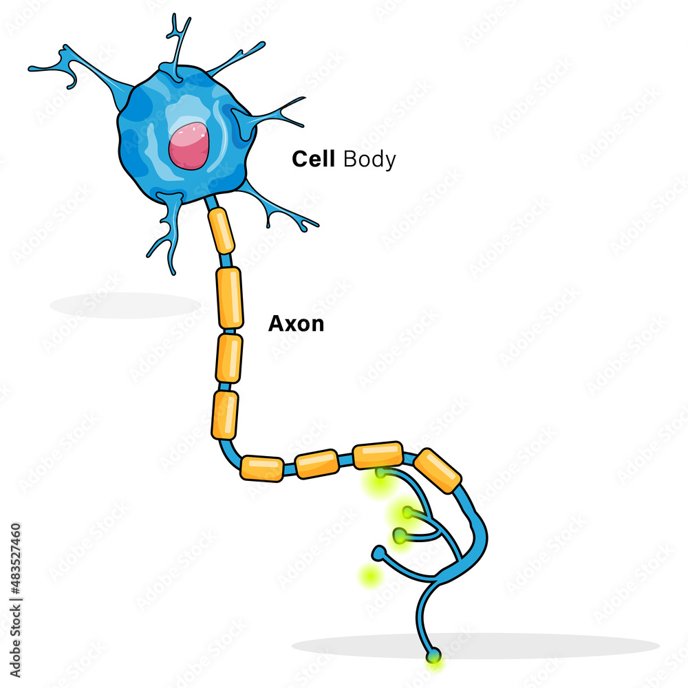 Neuron Diagram Unlabeled neuron, (1). axon, cell body, dendrites, nucleus, terminal. Unlabeled diagram of a motor neuron (try labeling: axon, dendrite, cell body, myelin, nodes of Ranvier, motor end plate).Read the definitions, then label the neuron diagram below. axon - the long extension of a neuron that carries nerve impulses away from the body of the cell.